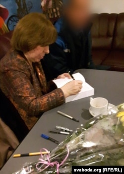 Сьвятлана падпісвае кнігі, быццам у чарзе ня сотні людзей, а адзін.