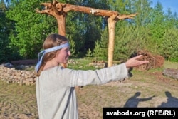 У «Мядзьведжым кутку» гаспадыня ўзнаўляе капішча ў гонар патрона турыстычнага каапэратыву, бога Вялеса.