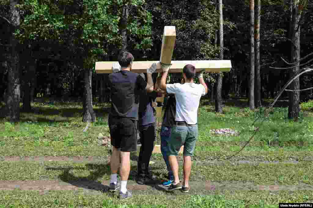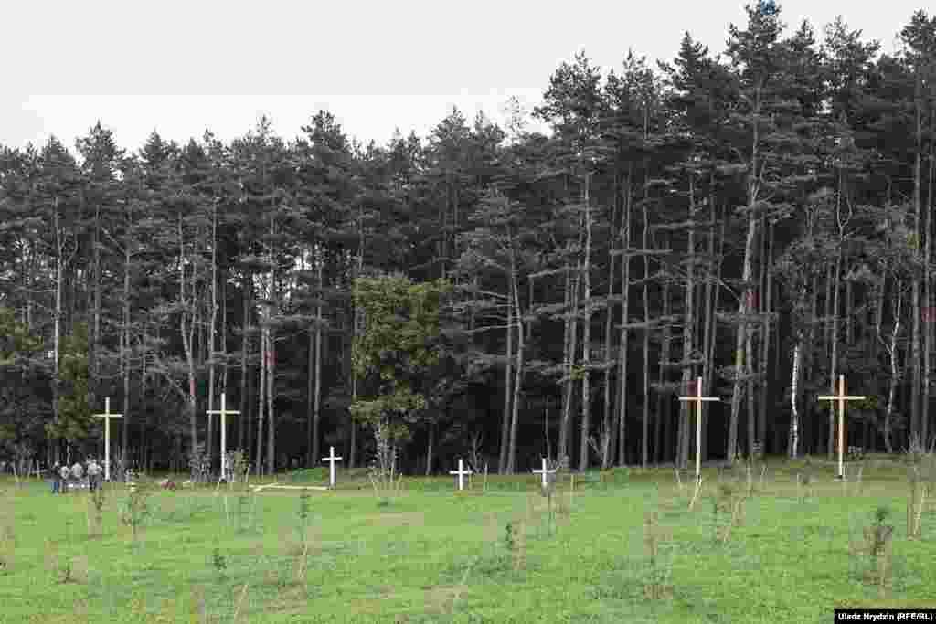 Зьміцер Дашкевіч з паплечнікамі ўсталявалі ў Курапатах 12 крыжоў. ФОТАРЭПАРТАЖ