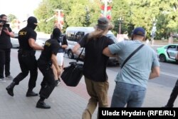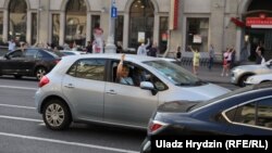 Аўтамабілісты зноў зладзілі акцыю салідарнасьці ў цэнтры Менску. Салідарных пешаходаў затрымлівае АМАП. Фота, відэа