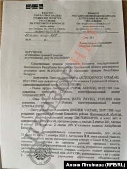 У запыце да Ўкраіны ў справе фігуруюць толькі чацьвёра грамадзян — Мікалай Аўтуховіч, Артур Папок, Павал Сава і Віктар Сьнегур (ураджэнец Украіны). Адзначаецца, што гэтая група 1 кастрычніка падпаліла аўтамабіль у Ваўкавыску, а 20 лістапада падарвала машыну ў Горадні.