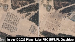 На спадарожнікавых здымках можна адсачыць, што лягер пачынаюць прыбіраць 3 ліпеня 2023 году. На здымку за 4 ліпеня яго ўжо няма.