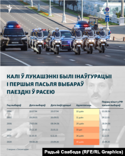 13 сакавіка Аляксандар Лукашэнка зь першым пасьля выбараў афіцыйным візытам прыляцеў у Маскву — без інаўгурацыі